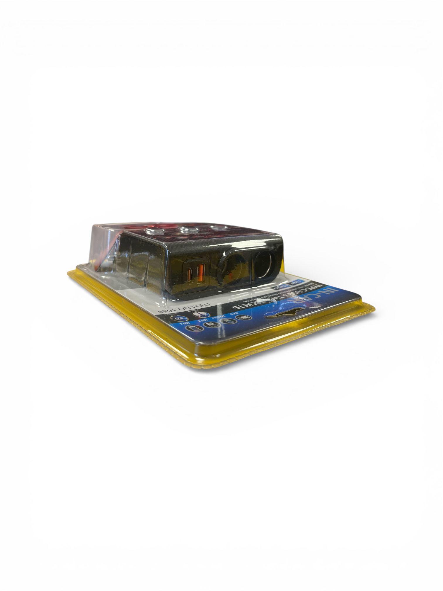 Praktisks auto strāvas sadalītājs, kas ļauj vienlaicīgi pieslēgt vairākas ierīces un tās ātri uzlādēt braukšanas laikā.