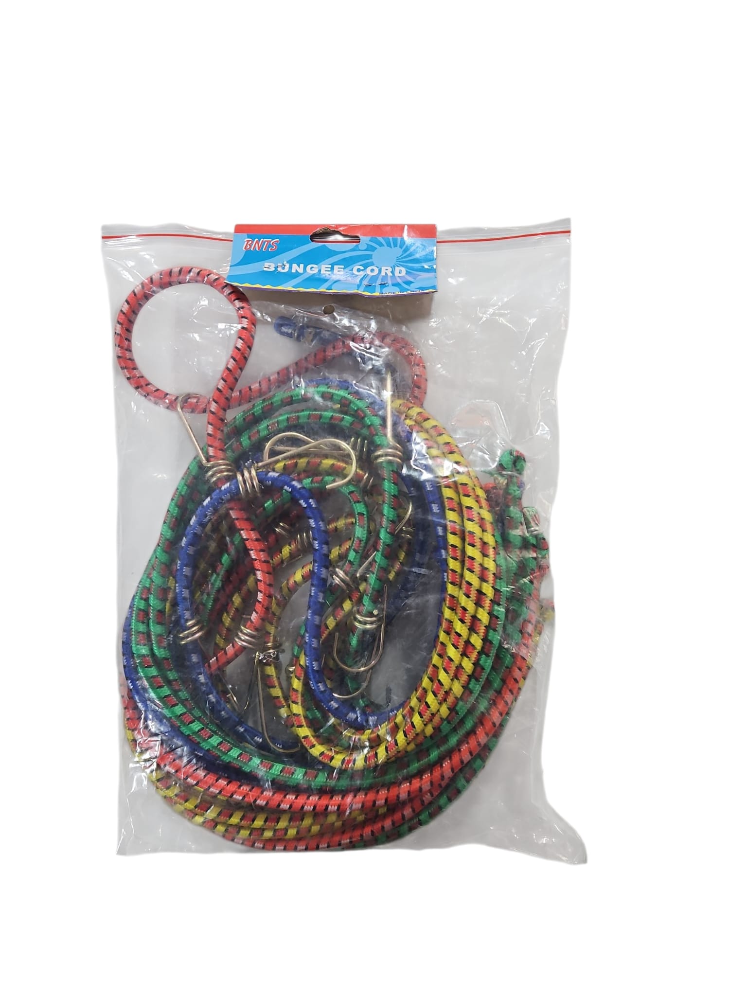 BNTS zīmola bungee gumiju komplekts – elastīgas stiprināšanas troses ar metāla āķiem galos.