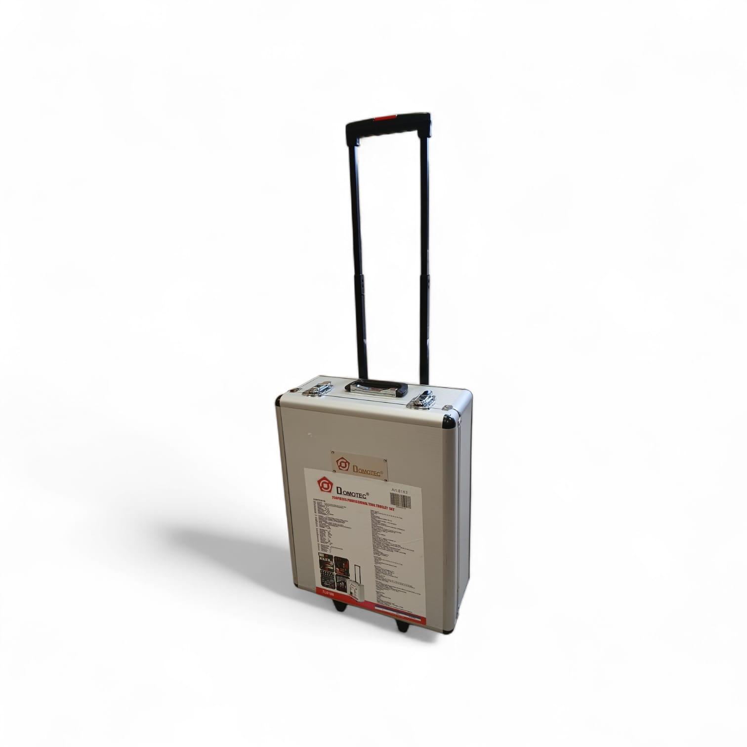 profesionāls instrumentu komplekts koferī ar riteņiem – 256 detaļas, paredzēts gan profesionālai lietošanai autoservisā, darbnīcā, gan prasīgiem mājas meistariem. Visi instrumenti ir ērti sakārtoti izturīgā alumīnija koferī ar teleskopisku rokturi un riteņiem, kas nodrošina ērtu transportēšanu un uzglabāšanu.