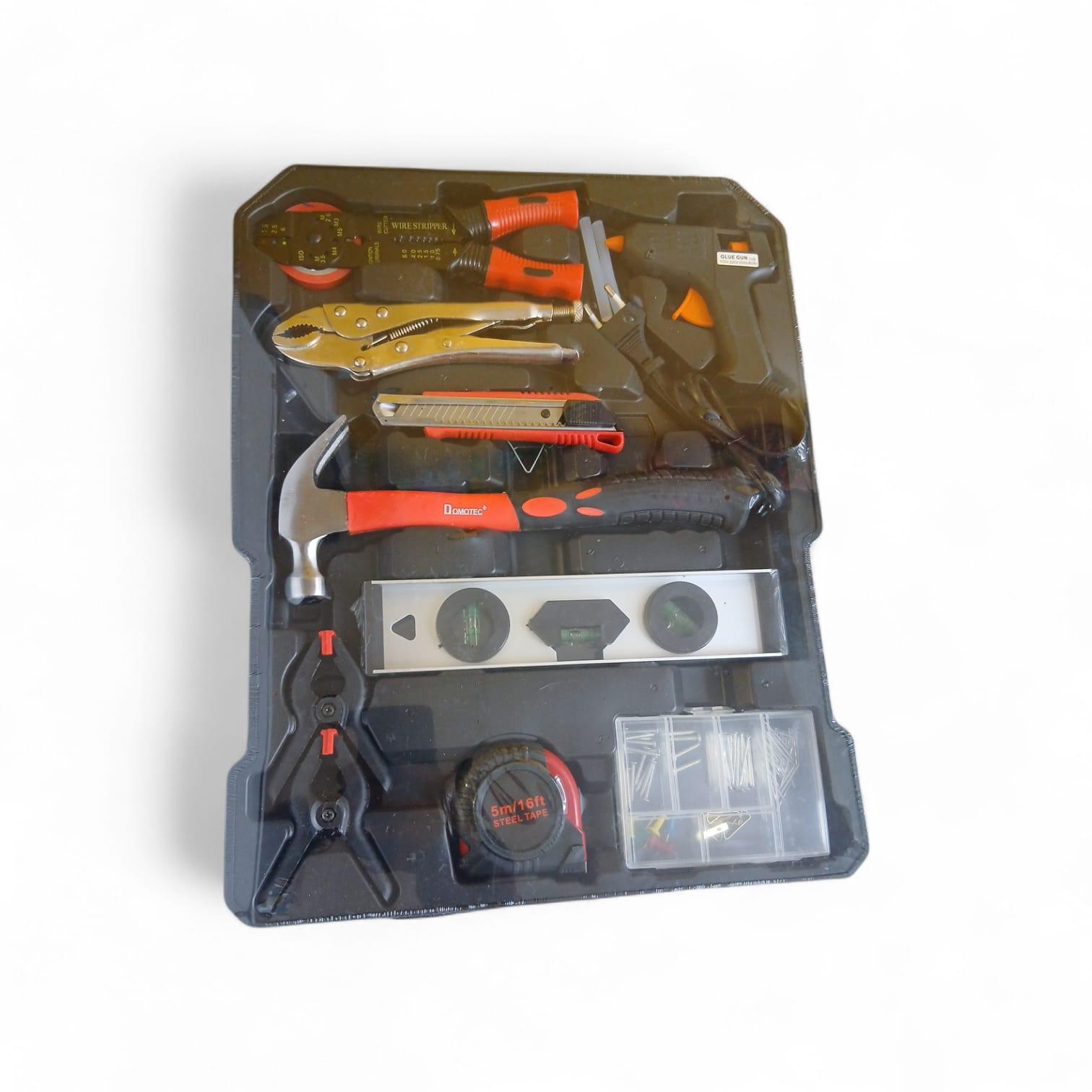 Komplekts ietver plašu roku instrumentu klāstu: uzgaļus, atslēgas, knaibles, skrūvgriežus, mērinstrumentus, elektriķa piederumus un citus biežāk nepieciešamos darbarīkus dažādiem remonta un montāžas darbiem.